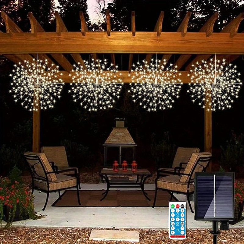 $56.99 - 4 Pack Solar Hanging Firework Lights, 480 LED Starburst Lights with Timer, Remote, 8 Modes, Waterproof Copper Wire for Patio, Umbrella & Christmas Decor 2025. Shop for cheap Solar String Lights online? Buy at lightinthebox.com on sale today!