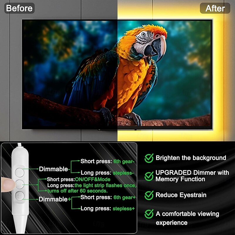 $6.99 - USB LED Strip Light 3 Colors for TV 1-5M USB 5V Flexible Light Strip with Self-adhesive Dimmable Dual Color LED light Strip 2800K-6500K Warm White to Daylight Suitable for Stairs Wardrobes Kitchens Mirrors 2025. Shop for cheap USB Strip Lights online? Buy at lightinthebox.com on sale today!
