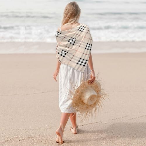 Black White Beige Checkered Plaid square silk scarf funky wrap scarf for women for Travel 35x35 bufanda para mujer