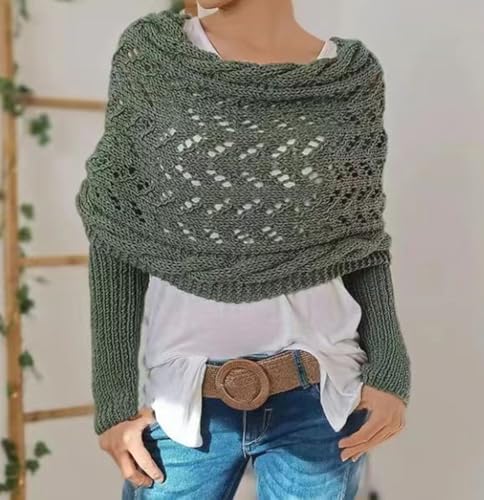 Multifunctional Scarf with Sleeves, Women Knitted Cable Wrap with Sleeves, Crochet Scarf Sweater Wrap (White, One Size)