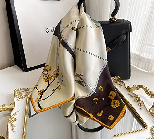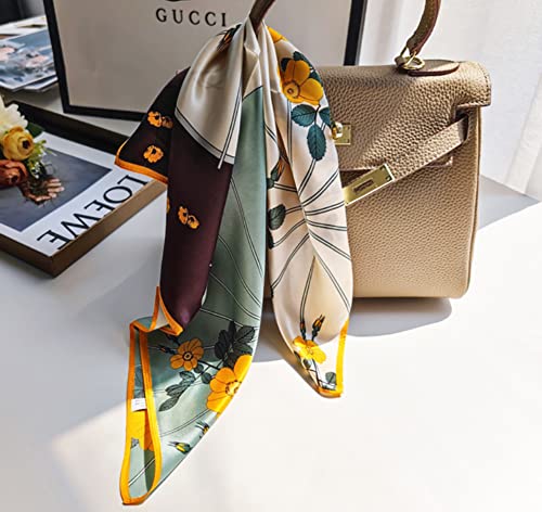 JERLA Women's Men's Small Square Real Mulberry Silk Scarfs Hair scarf head neck face scarf 21" x 21" (Green and yellow flower)