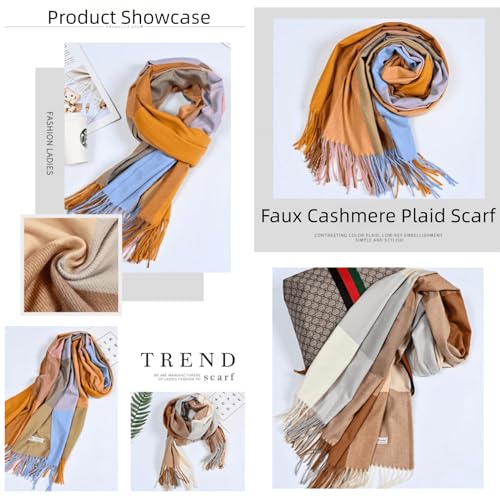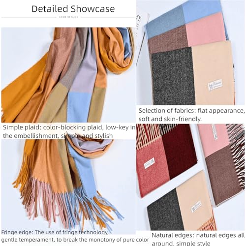 Fabric type: Imitation cashmereCare instructions: Dry clean only, hand washOrigin: Imported[QUALITY MATERIALS] This women's Scarves is made of faux cashmere acrylic, yarn and cotton processed well, tassel process, temperament and gentle, breaking the monotony of solid colors. Autumn and winter scarf is soft, close to the skin, no fading, no pilling, give you lasting warmth and softness.[Suitable Size]:This plaid Scarves Length 78.8 x 27.6 in (200*70CM Tassel 10.16 CM)),Oversized Plaid Scarves for most men, women, girls. The shawl is free to wrap around any outfit and keep you warm all day long. Keeps you warm and fashionable, add fashion to your jacket or sweater. (Note: Dry clean and hand wash only)[Unique Creative Design:] This men's women's fall and winter Scarves has a simple plaid, clashing plaid, low-key in the embellishment, tassel hem, the use of tassel process, temperament and gentle, breaking the monotony of solid colors, selected="selected" fabrics, flat appearance, soft and skin-friendly, around the edge of the natural, simple plaid styling, more fashionable. This is the new trend fashion statement for fall and winter season, suitable for daily life, work, leisure, street or party.[LUXURY FASHION VERSATILE] This women's scarves soft cashmere scarves, unique manufacturing process, experience a different feeling! EASY TO WEAR, Classic plaid style, easy to match with your outfit, make you more fashionable, weather appropriate dress with polished look jacket or sweater. Multiple designs to choose from, pattern colors are rich and lively, great gift for men or women for any occasion This is a great Christmas gift for family and friends.[Best Gift] This cashmere scarves find any match, you can wear it on coats, jackets, sweaters, tank tops and so on. Perfect for winter, fall. Exquisite workmanship, simple design. Great gift for your lover, friends, dad coworkers and so on. Perfect for everyday use. superior materials and excellent craftsmanship ensure long-lasting durability.