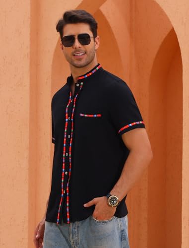 • Men's Casual Mexican Shirt: Mexican shirts for men traditional fiesta short sleeve beach shirt embroidered button down mexican dress shirt casual summer holiday shirt mexican shirts for men cotton colorful short sleeve shirts.