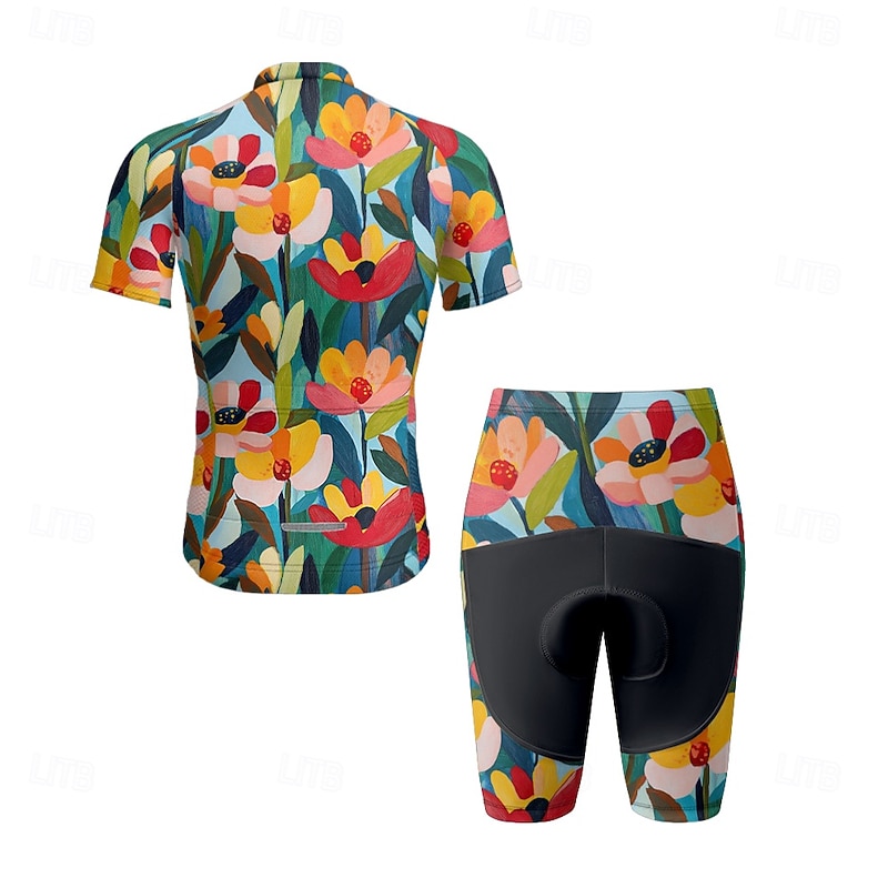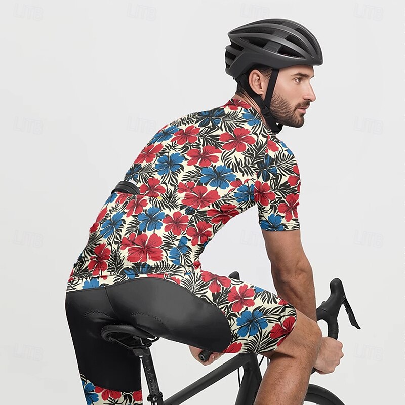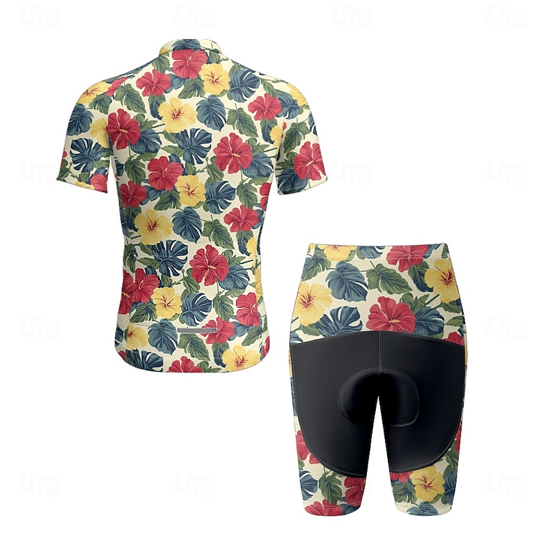 More information about Men's Cycling Jersey with Shorts Floral Botanical Short Sleeve Bike Clothing Suit with 3 Rear Pockets Mountain Bike MTB Road Bike Cycling Front Zipper Sweat wicking cozy Breathable Sports