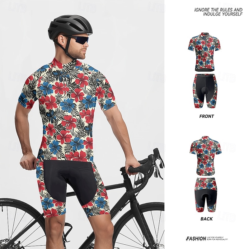 $47.99 - Men's Cycling Jersey with Shorts Short Sleeve MTB Road Bike Yellow Red Dark Navy Floral Botanical Spandex Sports Apparel 2025. Shop for cheap Men's Clothing Sets online? Buy at lightinthebox.com on sale today!