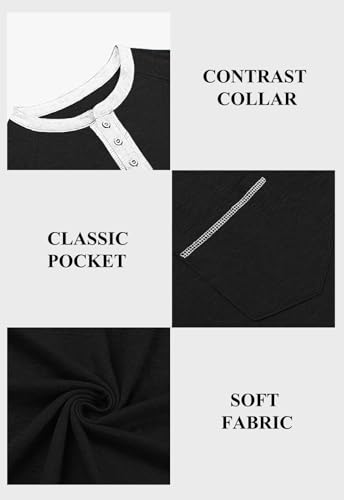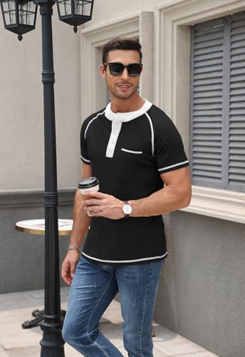 KUYIGO Mens Henley Short Sleeve T Shirt Casual Button Basic Tee Shirts Summer with Pocket