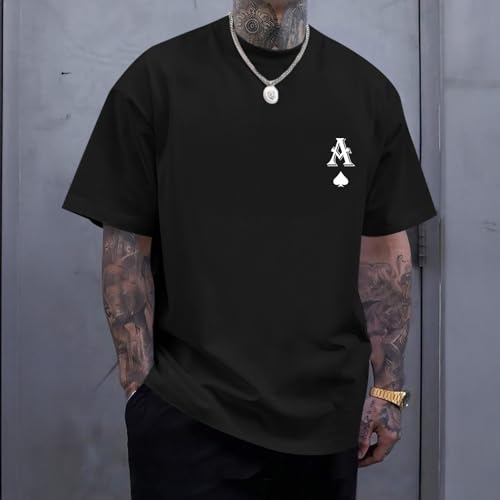 Fabric type: Cotten blendOrigin: ImportedClosure type: Pull OnNeck style: Crew NeckFabric: first-class cotton blend fabric, this graphic tshirt for men is soft, stretchy and breathable for pleasant wearingFeatures: Black spade graphic tee for men, mens oversized t-shirt, rapper poker ace of spades shirt, 90s vintage tees, streetwear shirts, round neck, short sleeve, pullovers, fashionableOccasions: Suitable for daily casual, going out, holiday, weekend, travel, vacation, etc. It's good for both day-to-day streetwear and nighttime activities, adding a fashionable edge to your lookMatch: This men's oversized shirt pairs easily with jeans, cargo pants, sweatpants, or shorts, creating an effortless street styleNote: We recommend washing it in cold water by hand or machine. Please kindly check the size chart in the production description before ordering Perfect for everyday use. High quality materials and excellent craftsmanship ensure long-lasting durability.