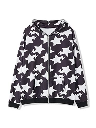 Hoodie Sweatshirt for Men Full Zip Up Oversized Star Print Graphic Hooded Jacket