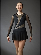 Why Choose Figure Skating Dress Women's Girls' Ice Skating Dress Black Patchwork Thumbhole Mesh High Elasticity Training Competition Skating Wear iconic Long Sleeve Ice Skating Figure Skating?