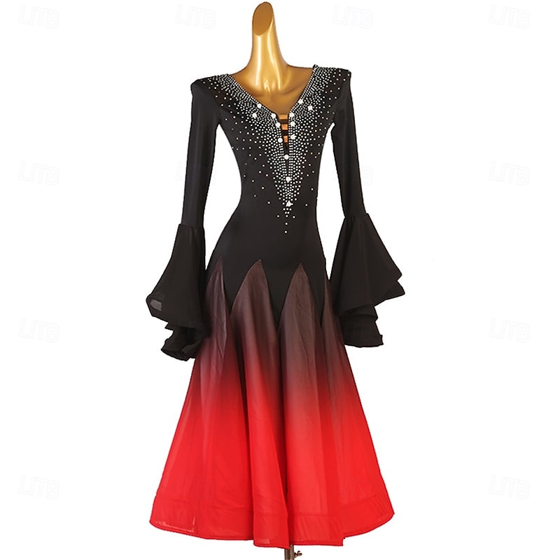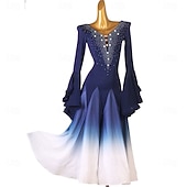 $233.69 - Women's Blue Ombre Ballroom Dance Dress with Rhinestone Detail, Bell Sleeves, and Flared Skirt – Ideal for Latin, Tango, and Performance Wear 2025. Shop for cheap Competition Wear online? Buy at lightinthebox.com on sale today!