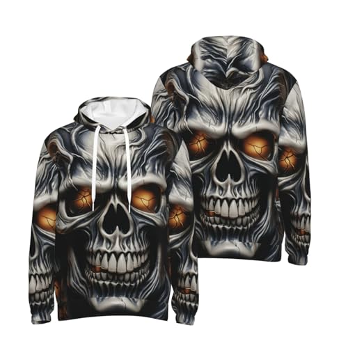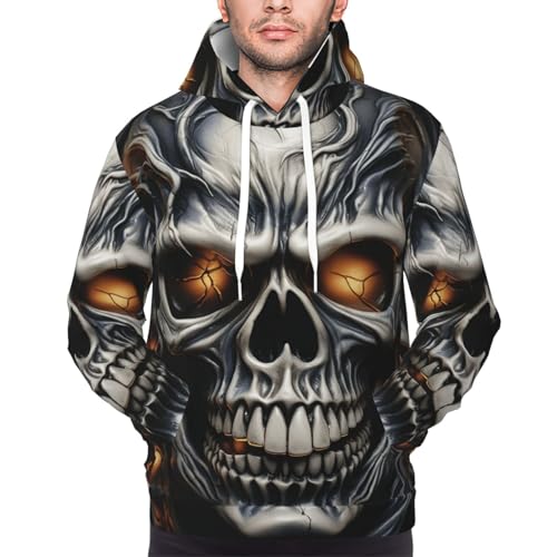 Men's Fleece Pullover Hoodie Long Sleeve Hooded Cool Evil Skull Sweatshirt Casual Shirts With Pockets 3X-Large Black