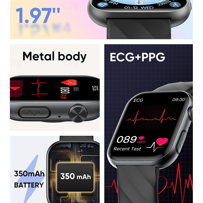 More information about 696 MT500 Smart Watch 1.97 inch Smart Band Fitness Bracelet Bluetooth ECG+PPG Temperature Monitoring Pedometer Compatible with Android iOS Men Hands-at no charge Calls Message Reminder Camera Control IP 67