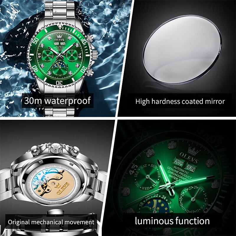 More information about OLEVS 6729 Mens Watches Luxury Original Fully Automatic Mechanical Wristwatch Calendar Week Waterproof Luminous Watches