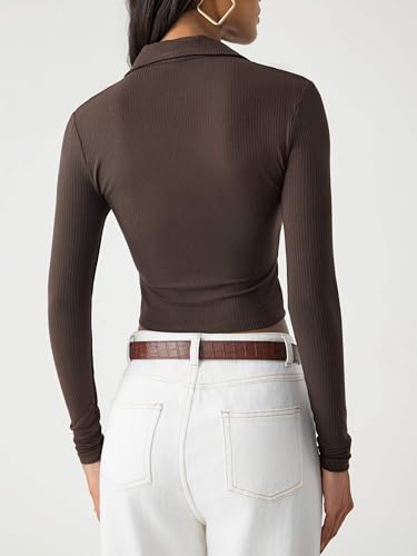 CIDER Fitted Long Sleeve Shirts for Women - V Neck Polo Shirts Business Casual Collared Work Tops Fitted Spring Fall Shirt