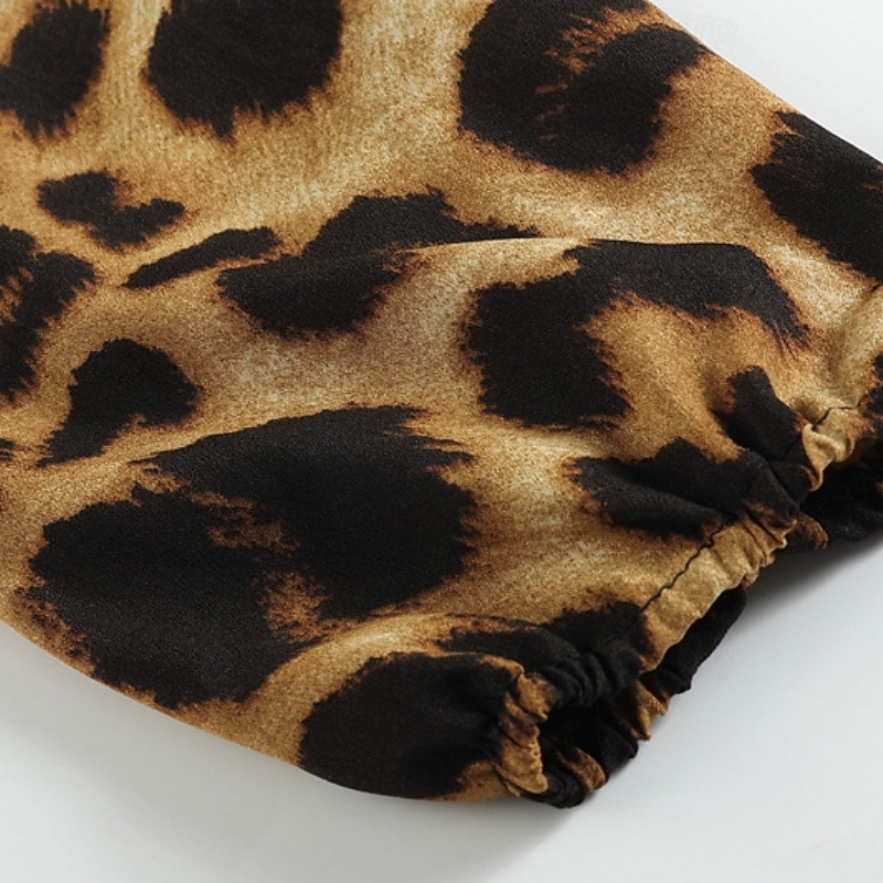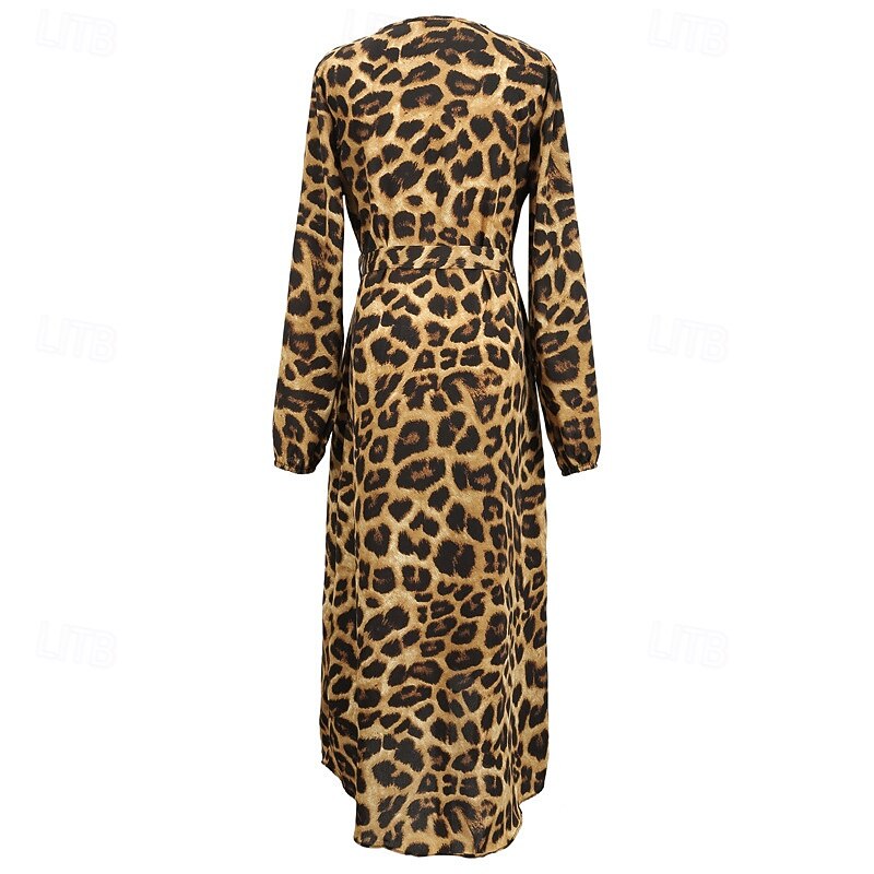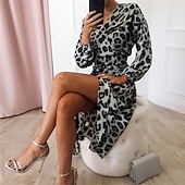More information about Women's Midi Dress Casual Dress Print Dress Fashion Holiday Going out Weekend Regular Fit Leopard Long Sleeve V Neck White Pink Brown Gray Summer
