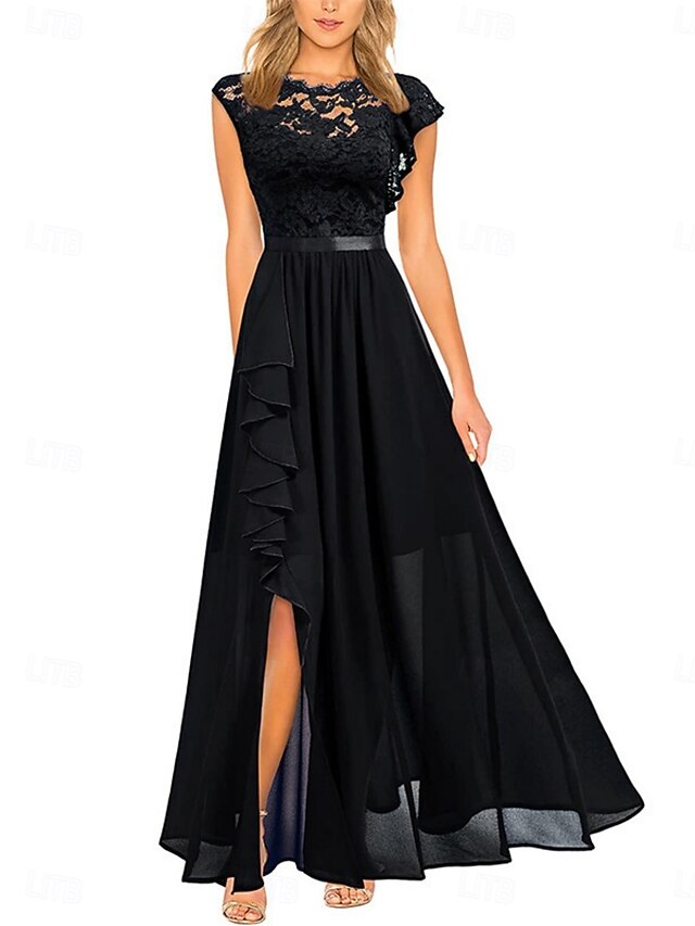 This Women's Long Dress Maxi Dress Lace Dress Cocktail Dress Wedding Guest Dress Chiffon Elegant Fashion present-day Wedding Wedding Guest Evening Party Regular Fit Plain Short Sleeve Crew Neck Black Pink Wine combines elegant design with practical functionality. Every detail has been carefully considered to ensure you get the best possible experience. The excellent construction means this product will serve you well for years to come.