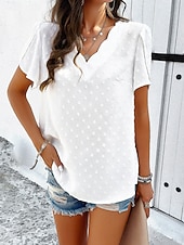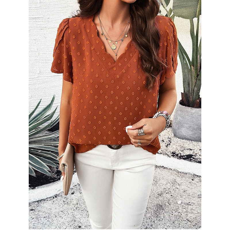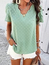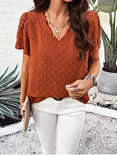 in-demand ! Women's Shirt Blouse Solid Color Elegant Daily Short Sleeve V Neck Regular Tops Daily Patchwork White Orange Green Summer