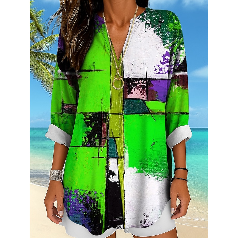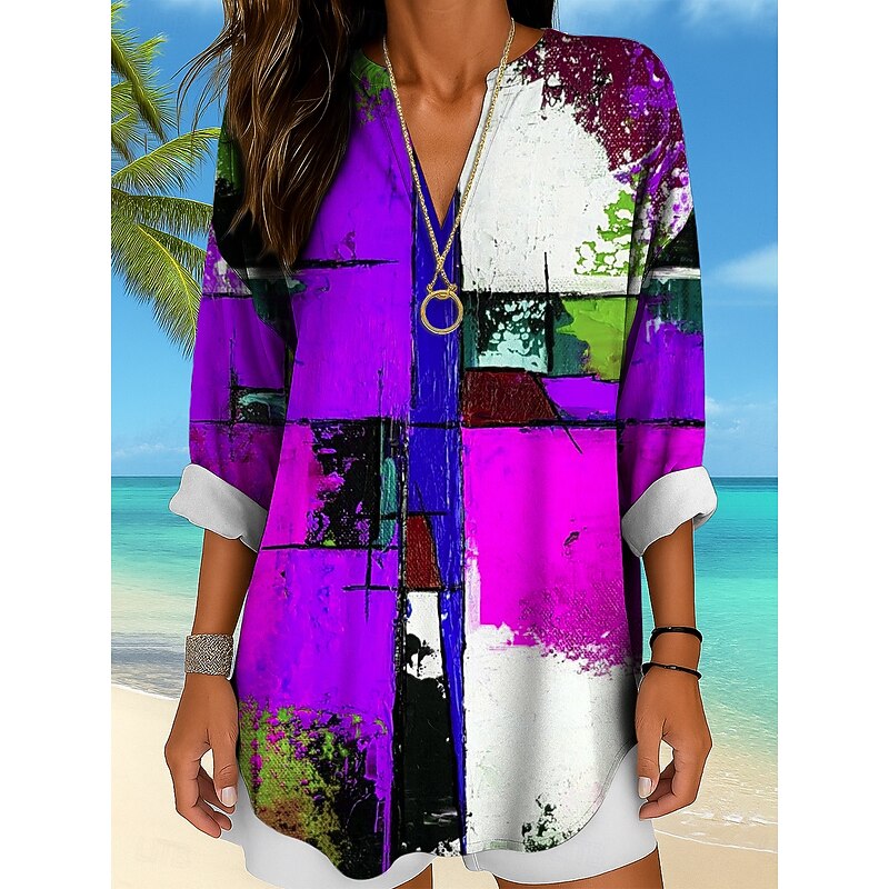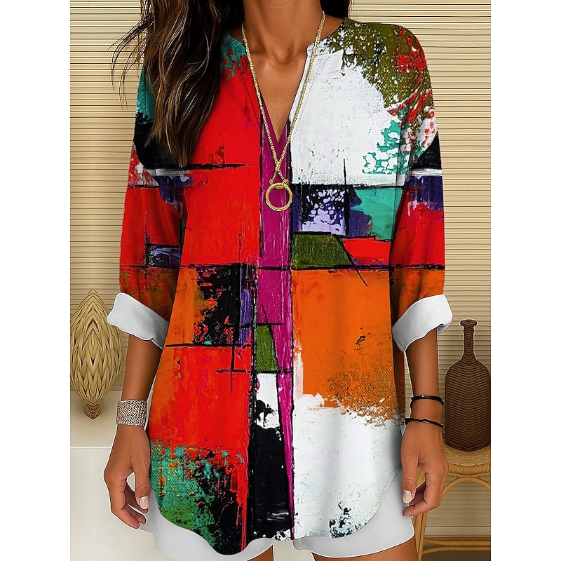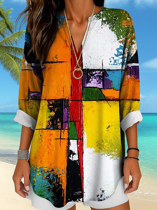 in-demand ! Women's Blouse Tunic V Neck Long Sleeve Boho Casual Tops Graphic Geometric Abstract Vintage Tropical Regular Tops Daily Wear Print Yellow Red Blue Purple Green