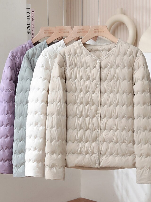 This Women's Down Jacket Warm pleasant Buttons Fashion Plain Going out Weekend Single Breasted Regular Crewneck Regular Fit Long Sleeve Outerwear Light Pink Light Blue White Fall Winter combines elegant design with practical functionality. Every detail has been carefully considered to ensure you get the best possible experience. The supreme construction means this product will serve you well for years to come.