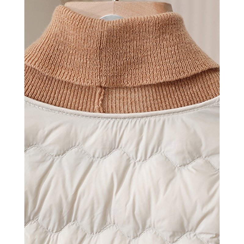 Why Choose Women's Down Jacket cozy pleasant Buttons Fashion Plain Going out Weekend Single Breasted Regular Crewneck Regular Fit Long Sleeve Outerwear Light Pink Light Blue White Fall Winter?