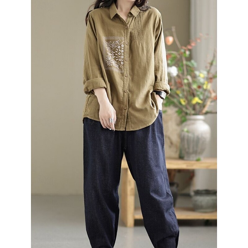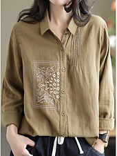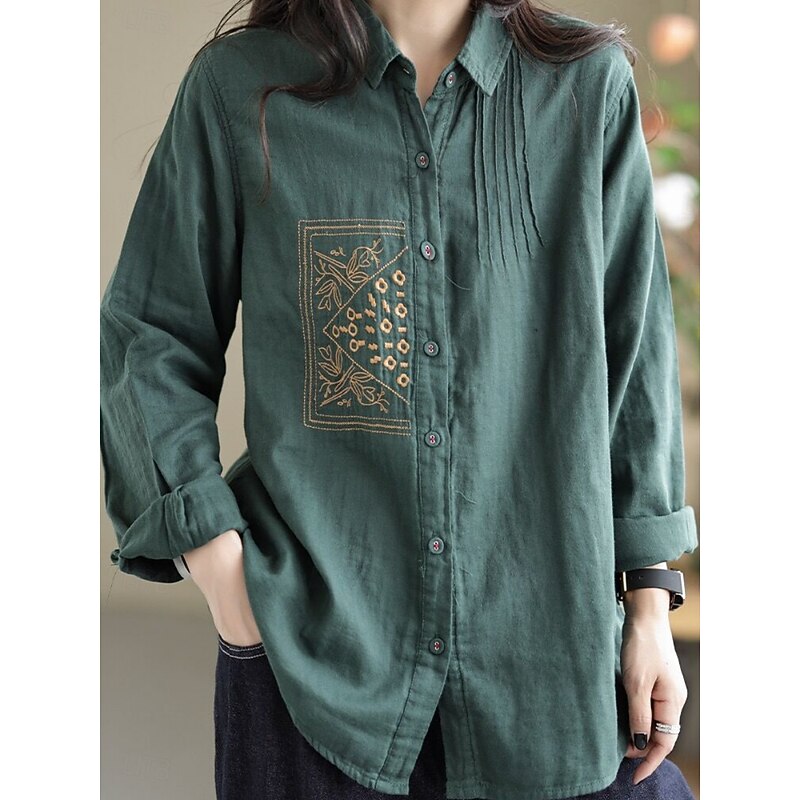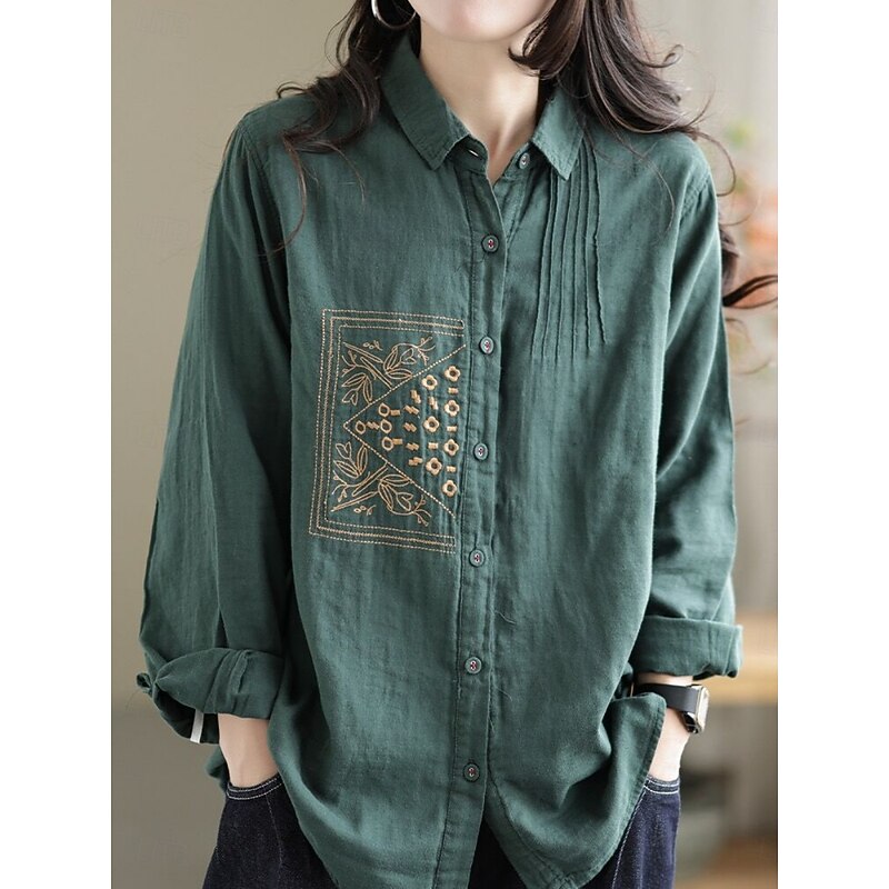 This Women's Cotton Linen Shirts Solid Color Vintage Basic Casual Long Sleeve Shirt Collar Regular Tops Daily Embroidered Pocket Buttons White Yellow Green Summer Spring Fall combines elegant design with practical functionality. Every detail has been carefully considered to ensure you get the best possible experience. The magnificent construction means this product will serve you well for years to come.