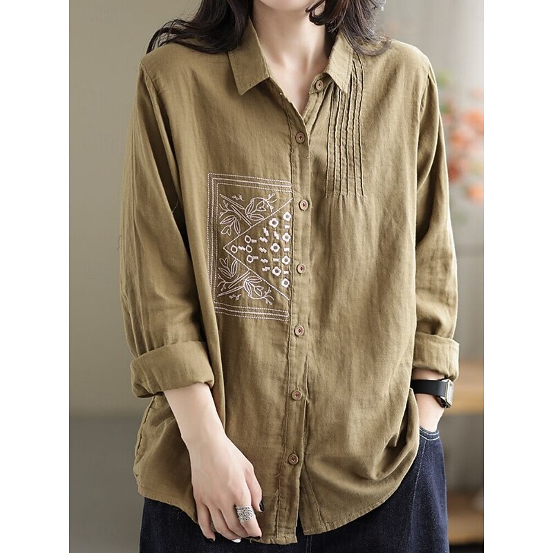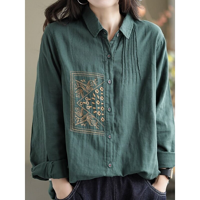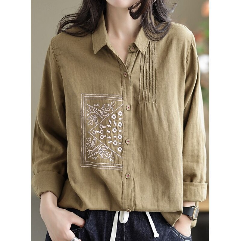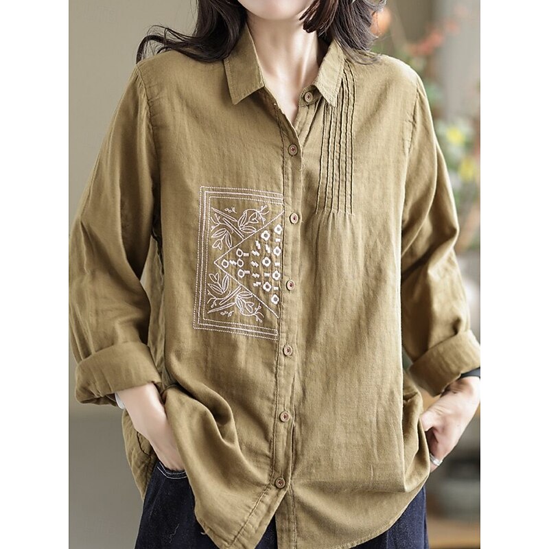 Why Choose Women's Cotton Linen Shirts Solid Color Vintage Basic Casual Long Sleeve Shirt Collar Regular Tops Daily Embroidered Pocket Buttons White Yellow Green Summer Spring Fall?