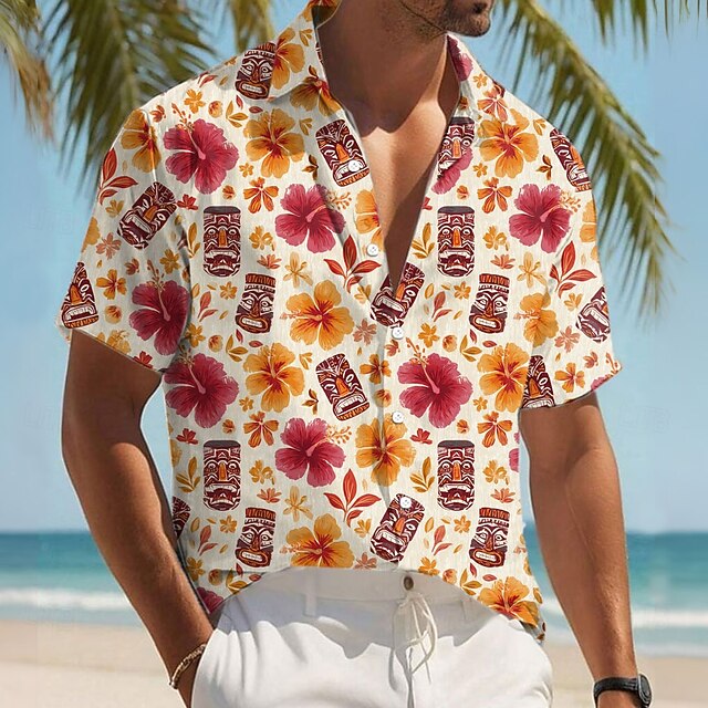 Why Choose Men's Tropical Flowers Ethnic Tiki Shirt Summer Hawaiian Shirt Button Up Shirt Short Sleeve Hawaiian Resort Vacation Holiday Beach Wear Summer Spring Turndown 3D Print Collared Shirts Khaki Apricot?