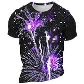 More information about Men's Graphic Fireworks T Shirt Short Sleeve T shirt 3D Print Crew Neck Shirt Daily Designer Retro Vintage Carnival Sports Outdoor Holiday Black Red Navy Blue Spring & Summer Clothing Apparel S M L