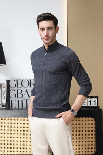 Men's 100% Wool Quarter Zip Sweater Long Sleeve Knit Mock Neck Sweaters