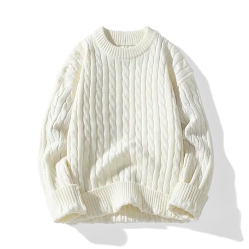 in-demand ! Men's Round Neck Cable Twist Sweater Thickened Solid Color Loose Knitted Sweater