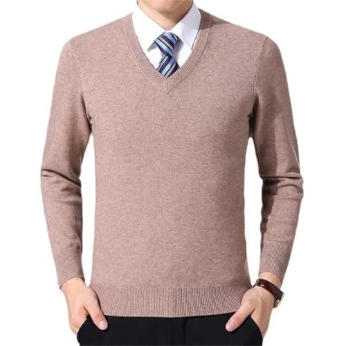 Mens Cashmere V Neck Pullover Long Sleeve Knitted Sweater Ribbed Cuff Casual Business Stretch Knit Top