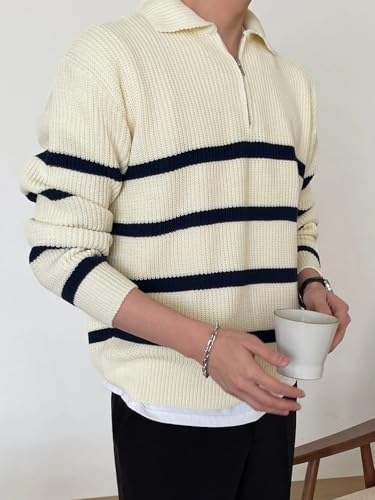 in-demand ! Men's Pullover Sweater Striped Colorblock Long Sleeve Zipper Sweaters