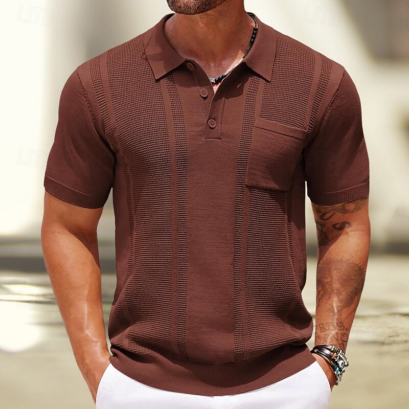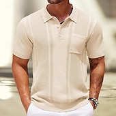 More information about Men's Button Up Polos Golf Shirt Casual Sports Lapel Short Sleeve Fashion Basic Plain Buttons Summer Blue Brown Khaki Button Up Polos