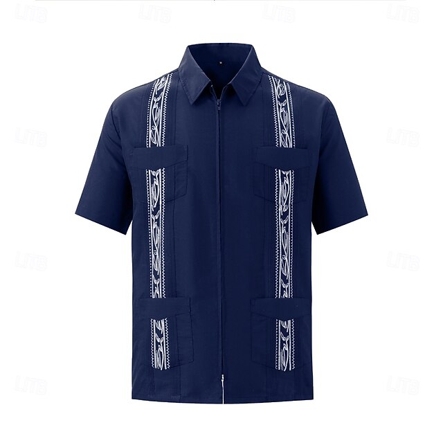 $35.99 - Men's Guayabera Shirt Burgundy Dark Navy Short Sleeve Embroidered Shirt Collar Outdoor Vacation Zip Up Clothing Apparel Elegant Vacation Vintage Daily 2025. Shop for cheap Men's Elite Shirts online? Buy at lightinthebox.com on sale today!