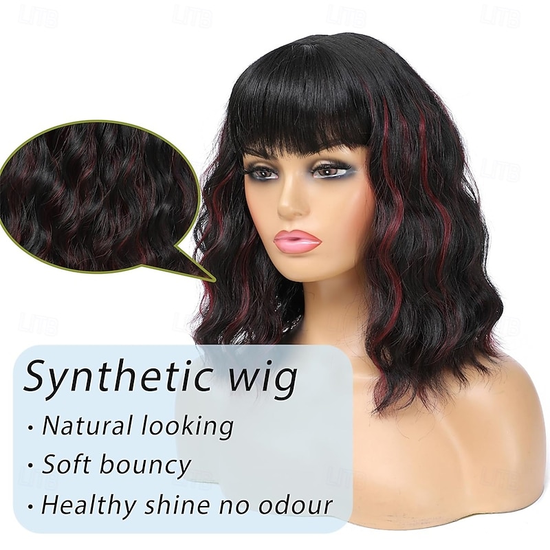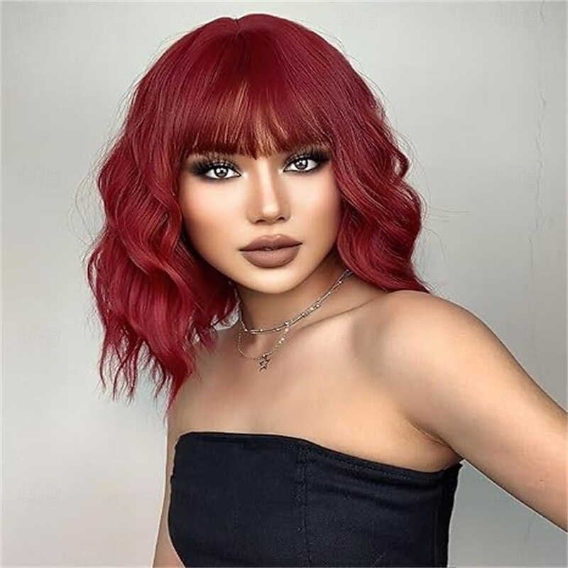 $25.99 - Short Wavy Wig with Bangs for Women Shoulder Length Bob Curly Synthetic Wigs with Natural Wavy Black Mixed Wine Red Heat Resistant Wig for Daily Party Use 2025. Shop for cheap Synthetic Trendy Wigs online? Buy at lightinthebox.com on sale today!