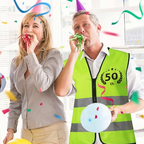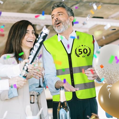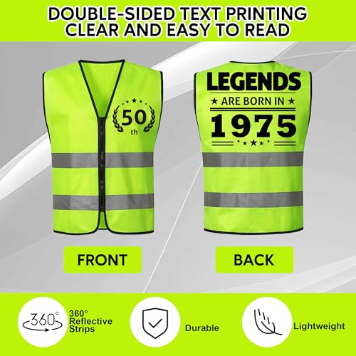 Remembered by the Years: This vest, inspired by the design of work vests, is specially customized for those born in 1975 who are celebrating their 50th birthdays. The one-of-a-kind combination of the birth year and the age seems to tell a wonderful life journey, full of commemorative significanceComfortable material: The vest is made of high-quality polyester, and the reflective strips are bright chemical fiber reflective strips, which are durable and not easy to fade. This retirement vest zips smoothly, is easy to put on and take off, and the fabric is thin and breathable. The loose fit is suitable for most body types. The fluorescent green vest can be easily matched with other clothesThe Party Highlight: As you step into the party venue wearing this vest, you'll surely become the spotlight. Everyone will gather around you, indulging in the joyous atmosphere and helping you create the most wonderful memories for your 50th birthdayPerfect 50th Birthday Decorations: Designed to bring laughter and joy, this vest is a must-have for 50th birthday party. It serves as a fantastic gimmick, creating a lively and cheerful atmosphere that keeps guests entertained. Itβs the perfect way to add a fun and memorable element to the celebrationUnique Gift Choice: The birthday vest with text is printed on both sides, the font pattern is printed clearly, and it is not easy to fade or tear. If you need to choose a personalized birthday gift for your husband, friend or father born in 1975, our vest is your perfect choice Perfect for everyday use. first-class materials and excellent craftsmanship ensure long-lasting durability.