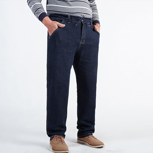 Plus Size Jeans for Men Elastic Waist Drawstring Loose Denim Pants