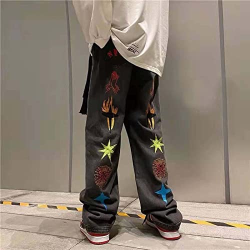 More information about Harajuku Men's Jeans Colorful Print Straight Jeans Street Hip-Hop Loose Jeans Four Seasons Commuter Jeans Gothic Jeans