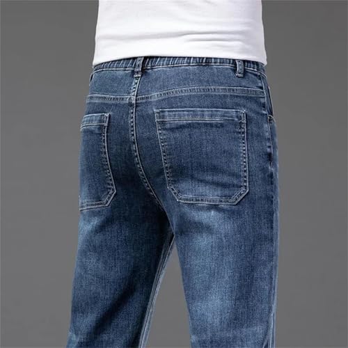 Men's iconic Jeans Elastic Loose Straight Cotton Denim Trousers Business Casual Thin Pants