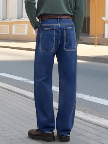Men's Baggy Jeans Wide Leg Denim Pants - Relaxed Fit, Straight Leg, Stretch Comfort with Oversized Back Pockets