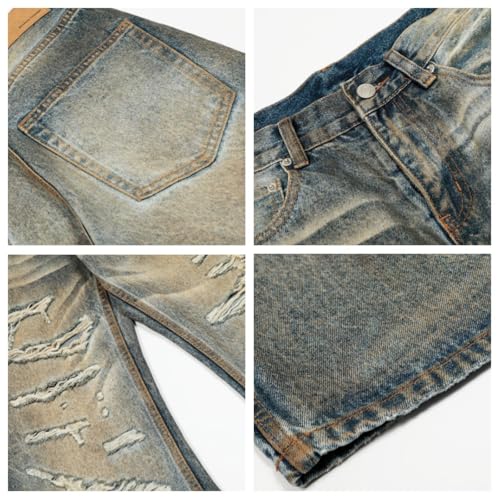 More information about Men's Washed Ripped Straight Leg Denim Pants Retro Distressed Loose Jeans with Pockets
