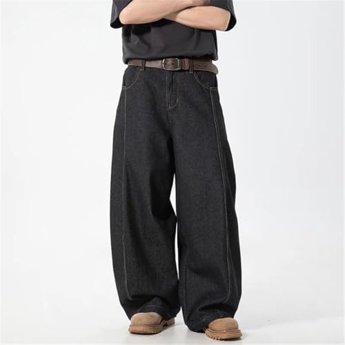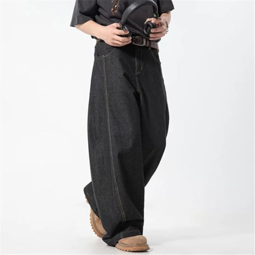 Men's Denim Pants Vintage Washing Wide Leg Loose Elastic Jeans Casual Straight Trousers