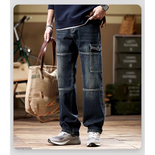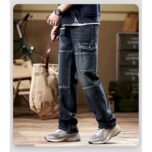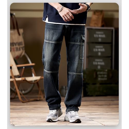 Straight Leg Jeans for Men Loose Denim Trousers Vintage Streetwear with Flap Pockets