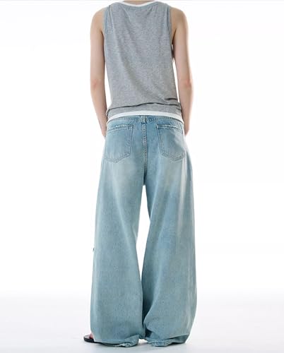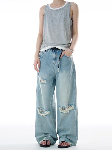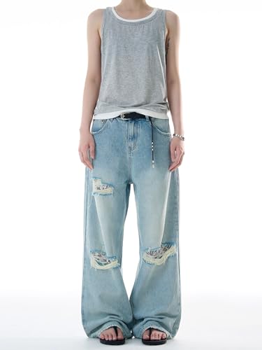 Men's Jeans American High-Street Distressed Denim Pants Loose-Fit Straight-Leg Vintage Long Trouser for Men
