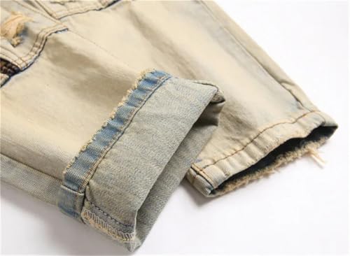 Men's Punk Jeans Ripped Fabric Pencil Multi-Pocket Zipper Mid-Waist Casual Pants