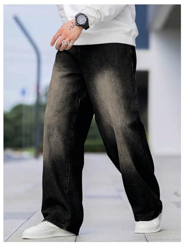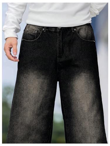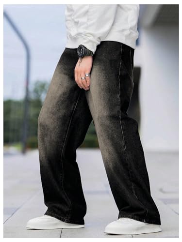 OYOANGLE Men's Wide Leg Denim Pants Casual Hip Hop Solid Loose Fit Jean Pants Streetwear Skateboard Pants