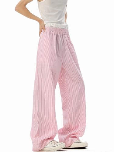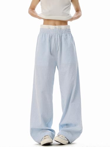 in-demand ! Men's Pants Ice Silk Summer Patchwork Loose Wide-Leg Striped Casual Trouser for Men
