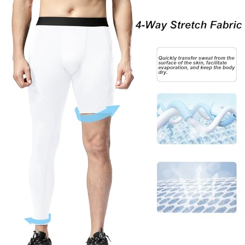 Men’s One Leg Compression Pants Full Length Tight Basketball 1/2 Single Leg Long Pant Base Layer Leggings Underwear