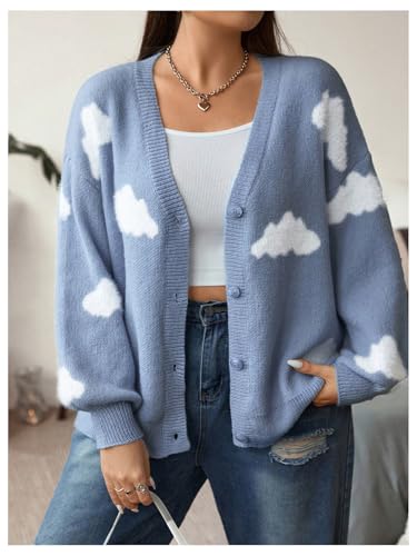 - Features: Cute cloud graphic cardigan sweaters for women, v neck, long sleeve, drop shoulder, button front, knitwear, loose fit, fashionable