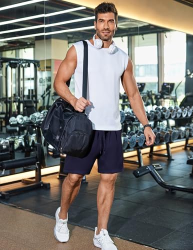 PINSPARK Men's Gym Workout Shorts - 7" speedy Dry Running Athletic Shorts with Towel Loop and Zipper Pockets